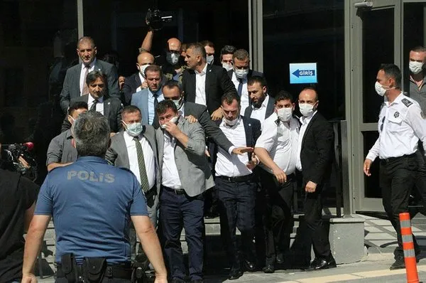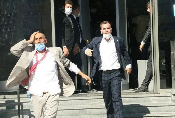 İYİ Parti Grup Başkanvekili Lütfü Türkkan'ın da arbede sırasında gruptan birkaç kişiyi zarar görmemeleri için kollarına girerek, parti binasından çıkardığı görüldü.
