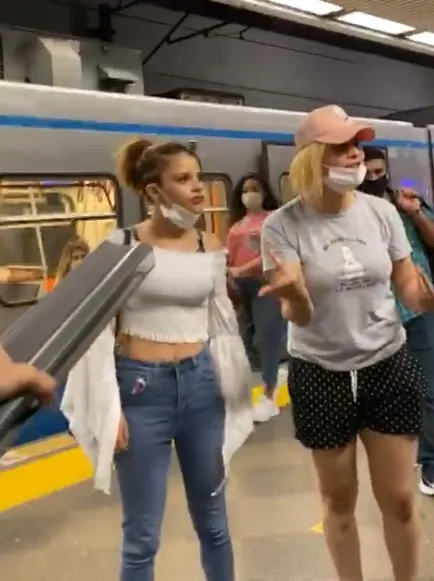 Neye uğradığını şaşıran genç adam cebinden çıkardığı cep telefonu ile turist olduğu anlaşılan Sara B., isimli kadını videoya almaya başladı. Taşan'ın telefonu ile kendisini çektiğini fark eden genç kadın daha da öfkelenerek biranda saldırıya geçti. Metro içerisinde yaşanan kovalamaca sırasında kamera kayıtlarında genç turistin maske tak uyarısına tükürerek yanıt verdiği dikkatlerden kaçmadı.