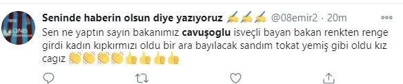 "İsveç Dışişleri Bakanı'na haddini bildiren Çavuşoğlu'nun ağzına sağlık, bravo!"