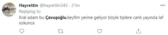 "Kral adam bu Çavuşoğlu,keyfim yerine geliyor böyle tiplere canlı yayında cevabını verince."