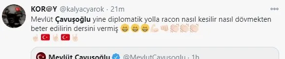 "Mevlüt Çavuşoğlu yine diplomatik yolla racon nasıl kesilir nasıl dövmekten beter edilirin dersini vermiş."