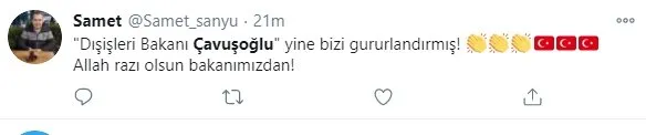 "Dışişleri Bakanı Çavuşoğlu" yine bizi gururlandırmış! Clapping hands signClapping hands signClapping hands signFlag of TurkeyFlag of TurkeyFlag of Turkey Allah razı olsun bakanımızdan!