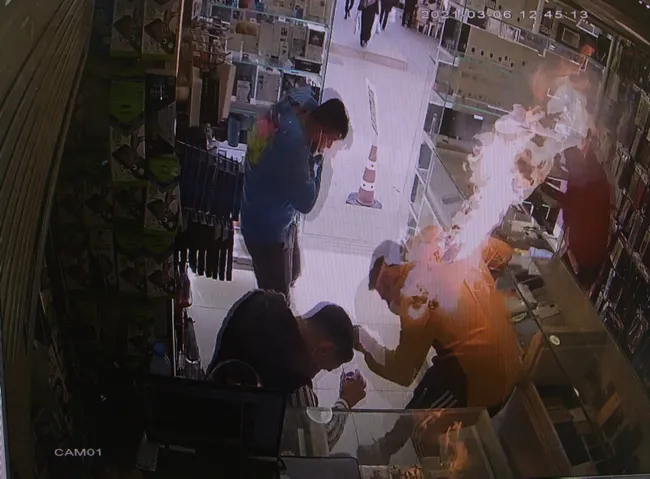 24 yıldır telefon tamir ettiğini ve bazen böyle olaylar yaşandığını anlatan işletme sahibi Paşa Kuyucu, "Müşterimizin getirdiği telefon bataryası şişmişti, 'yeni batarya taktırmak istiyorum, bataryam şişti' dedi. Biz de 'değiştirelim' dedik, daha telefonu söker sökmez, şişen batarya patladı, müşterimizin üzerine geldi. Çok şükür, bir şey olmadı, alev aldı ama müşterimiz hemen bir refleksle üzerindeki tişörtü çıkardı, alevlerin büyümesini engelledi ama korktuk tabi, büyük bir sesle patladı" dedi.