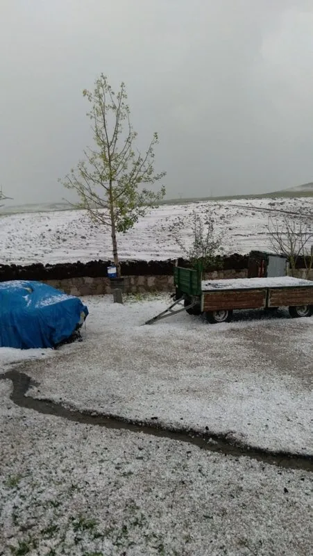 Ceviz büyüklüğünde yağan dolu nedeniyle ekili araziler de zarar gördü.