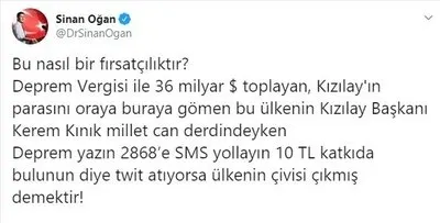 Elazığ’daki depremin ardından Türkiye kenetlenmişken, CHP’li Tuncay Özkan, eski milletvekili Sinan Oğan, Gelecek Partisi Genel Başkan Yardımcısı Selçuk Özdağ gibi isimler depremden siyasi çıkar elde etmek için harekete geçti. Depremin hemen ardından sosyal medya üzerinden tepki çeken paylaşımlarda bulunan sözde muhalefet partilerinin siyasetçilerine CHP medyası da çanak tuttu. CHP’li Tuncay Özkan, Şanlıurfa’da tadilat halinde olan bir hastanenin videosunu paylaşarak sanki Elazığ’daki depremde hasar görmüş gibi göstermeye çalıştı. Yapılan bu provokasyona sosyal medyadan büyük tepki geldi...