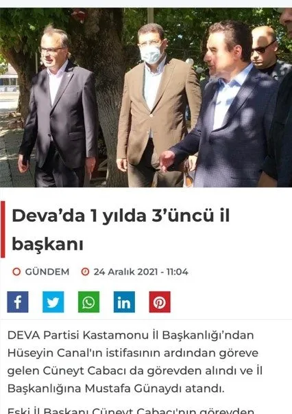 DEVA Partisi Kastamonu İl Başkanı Mustafa Günaydı, silahlı terör örgütü FETÖ/PDY'nin yeniden yapılanmasına yönelik soruşturma kapsamında yurt dışına kaçmaya çalışırken Antalya’da yakalandı. DEVA Partisi Kastamonu İl Başkanı Günaydı’nın gözaltına alınmasının ardından 3 hafta önce İl Başkanlığı görevinden ayrılan Cüneyt Cabacı, Kastamonu İl Başkanının kendisi olduğunu belirterek algı oluşturmaya çalıştı.