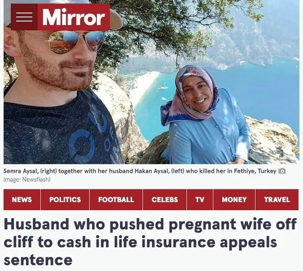 2018 yılında 400 bin liralık sigorta parası için hamile karısı Semra Aysal'ı Fethiye'de kayalıklardan atarak öldüren Hakan Aysal'ın cezaya ettiği itiraz dünyanın da ilgisini çekti. Dünya basınında birkaç gazete, Uysal'ın 'hasta olduğu' bahanesine sığınarak cezadan kaçmaya çalıştığını ifade etti.