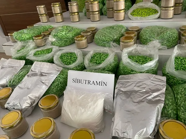 Büyükçekmece'de bir adreste 250 bin adet sahte zayıflama hapı, cinsel içerikli hap, 100 şişe zayıflama macunu ve zayıflama haplarının imalatında kullanılan "Sibutramin" maddesi ele geçirildi.
