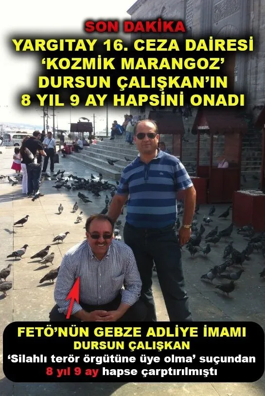 Türkiye’ye tanıtmıştı! Kozmik Marangoz’a verilen ceza Yargıtay tarafından onandı... Fetullahçı Terör Örgütü’nün ‘Gebze Adliye Sorumlusu’ olarak 15 Temmuz ardından yakalanan ve çok sayıda hakim-savcı ile telefon trafiği ve irtibatı tespit edilen Dursun Çalışkan, ‘Silahlı terör örgütüne üye olma’ suçu kapsamında 8 yıl 9 ay hapis cezasına çarptırılmıştı. Çalışkan’ın cezası Yargıtay 16. Ceza Dairesi’nce onandı.