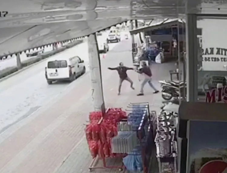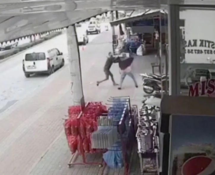 Bir işyerinin güvenlik kamerasına da yansıyan kavga taraflardan birisinin yerden kalkamayacak duruma gelmesine kadar devam etti.