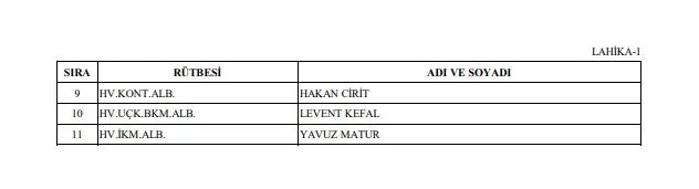 Donanma Komutanı Oramiral Ercüment Tatlıoğlu Deniz Kuvvetleri Komutanlığına, Muharip Hava Kuvveti Komutanı Orgeneral Atilla Gülan Hava Kuvvetleri Komutanlığına atandı.