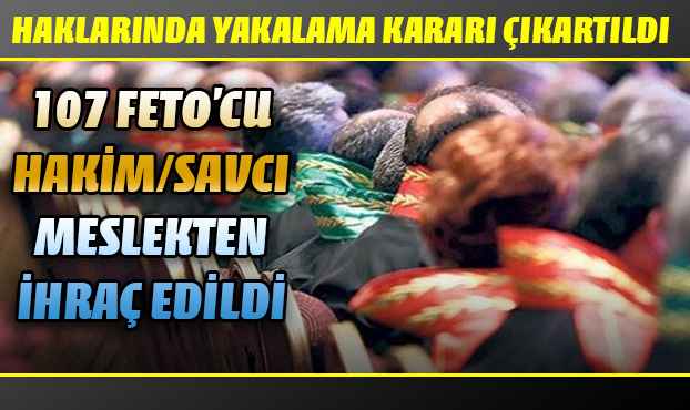 Hakimler ve Savcılar Yüksek Kurulu (HSYK), 'Fethullahçı Terör Örgütü (FETÖ)' soruşturması kapsamında, 107 hakim ve savcıyı meslekten ihraç etti. İhraç edilen hakim ve savcılar hakkında gözaltı kararı da çıkarıldı.