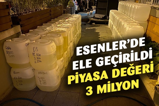 Esenler Asayiş Büro Amirliği ekipleri, ilçede bulunan bir depoda kaçak alkol ve parfüm üretilip piyasaya sürüldüğü ihbarı üzerine harekete geçti. Polis ekipleri olaya ilişkin yaptığı çalışmalar kapsamında Giyimkent 19. Sokak içerisinde bulunan adresi belirledi. Yapılan baskın sonucunda 1,5 ton kaçak alkol ve 3 milyon TL değerinde parfüm ele geçirildi.