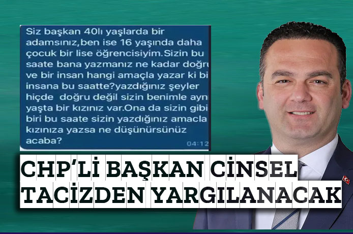 SON DAKİKA… Giresun'da Görele Belediye Başkanı Hasbi Dede, belediye çalışanının 16 yaşındaki kızına cinsel içerikli mesajlar gönderdi. Skandalın ortaya çıkmasının ardından görevden uzaklaştırılan CHP’li belediye başkanı Dede, tutuklanarak cezaevine gönderildi. Hazırlanan iddianamede, Dede hakkında ‘elektronik haberleşme araçlarının sağladığı kolaylıktan yararlanmak suretiyle çocuğa karşı cinsel taciz’ suçundan hapis cezası istendi.