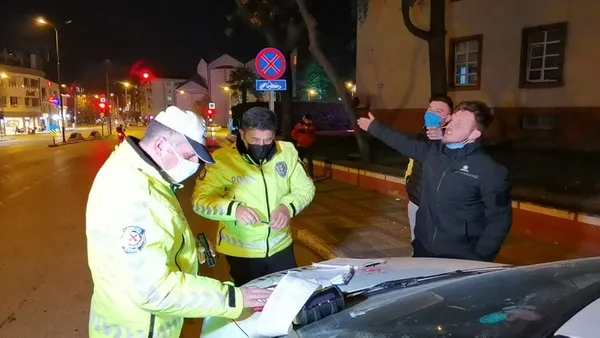 Bursa İnegöl İlçe Emniyet Müdürlüğü Trafik Büro Amirliği ekipleri, Cuma Mahallesi Nuri Doğrul Caddesi'nde sokağa çıkma kısıtlaması kapsamında kontrol noktası oluşturdu. Ekipler, caddede ters yönden ilerlediğini fark ettikleri 16 MES 43 plakalı kamyoneti durdurdu. Polis, araçtaki Murat B. ve Ferit E.'den izin belgelerini istedi.