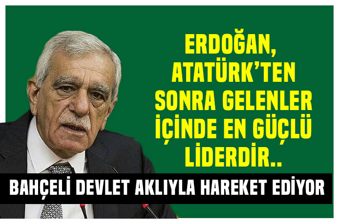 Cumhurbaşkanı Erdoğan'ın devlet kurumları üzerindeki etkisine dikkat çeken Ahmet Türk, "Bugüne kadar Mustafa Kemal Atatürk dışında devletin bütün kurumlarında bu kadar etkin gücü olan başka bir lider olmadı" dedi. Türk, Atatürk'ten sonra ilk kez devlet içinde çözüm ve barış konusunda bu ölçüde güçlü bir siyasi konsensüs oluştuğunu ifade etti.