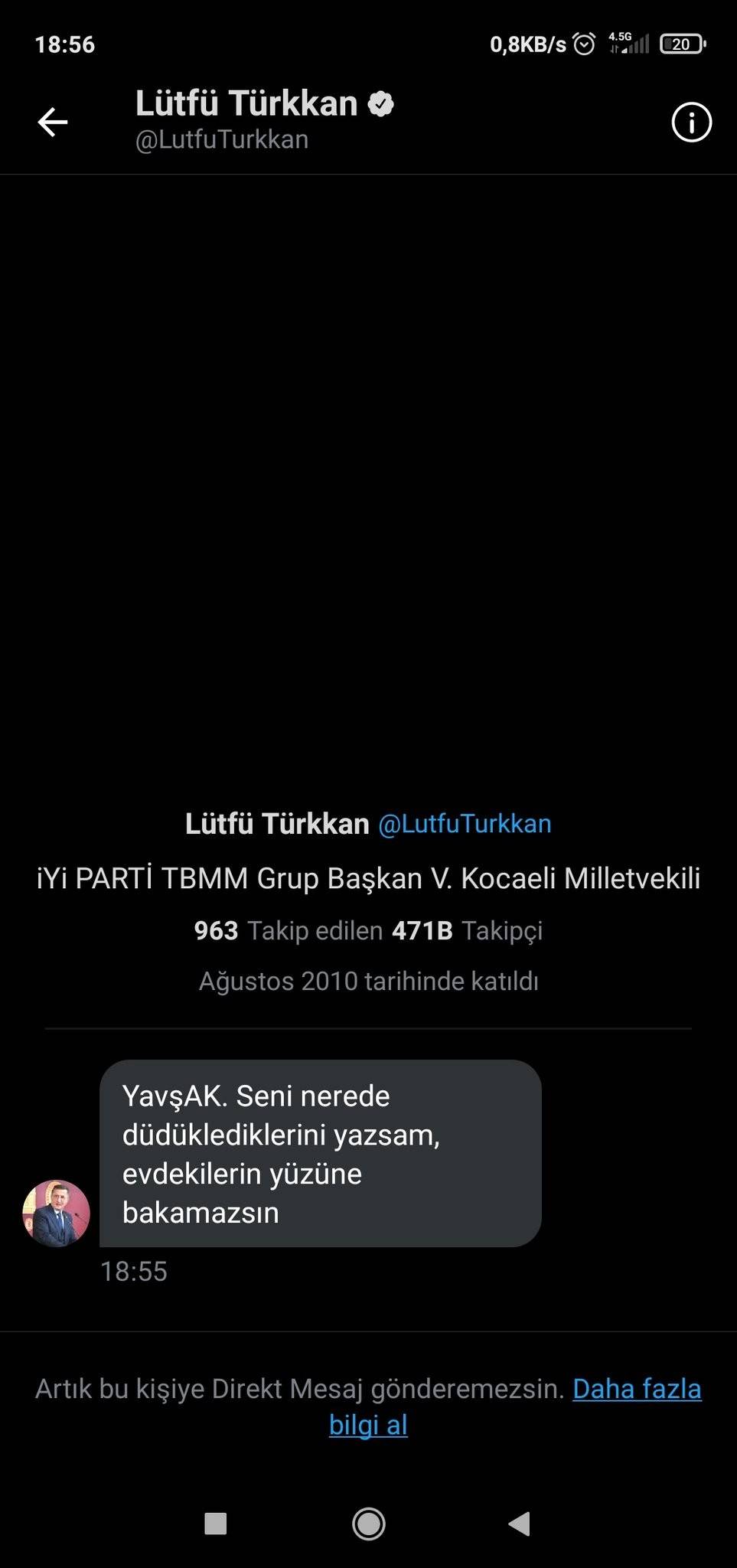 Seviyesini ayaklar altına düşüren Lütfü Türkkan "YavşAK seni nerede düdüklediklerini yazsam evdekilerin yüzüne bakamazsın" dedi.