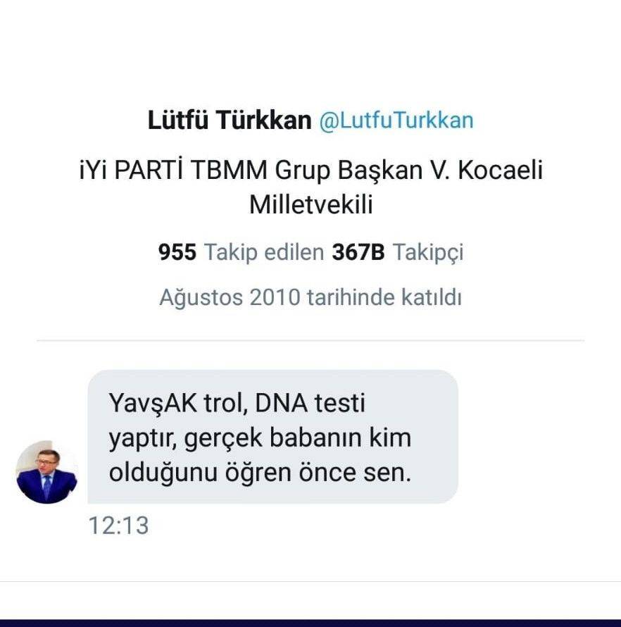 Baran'a özel mesaj gönderen Lütfü Türkkan, "YavşAK trol, DNA testi yaptır, gerçek babanın kim olduğunu öğren önce sen" diyerek içinde bulunduğu çukuru gözler önüne sermişti.