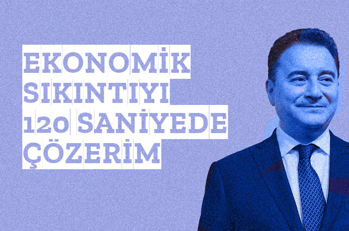DEVA Partisi Genel Başkanı Ali Babacan, Cumhurbaşkanı olması halinde ekonomiyi 120 saniyede düzelteceği formülü açıkladı. Babacan "İlk yapılacak işlerden bir tanesi dönüp medyaya 'Arkadaşlar özgürsünüz, şöyle rahat bir yazıp çizin' demek. Bakın 60 saniye sürdü. Aynı anda dönüp yargıya bir 60 saniye de 'Hakimlerimiz, savcılarımız artık özgürsünüz. Adaletin gereğini yapın' demek. Çok basit bakın" ifadelerini kullandı.