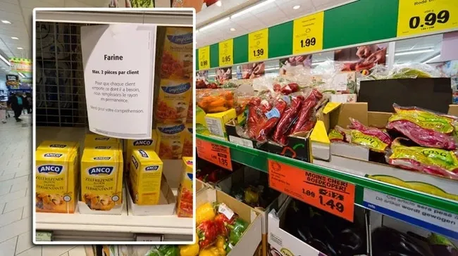 Belçika'daki süpermarketlerin büyük kısmı, Ukrayna-Rusya savaşının talebi artırması nedeniyle yağ ve un başta olmak üzere tuvalet kağıdı ve konserve gıda gibi çeşitli ürünlerin satışına sınırlama getirdi.