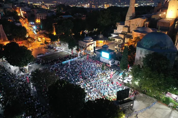 86 yıl sonra ibadete açılan Ayasofya-i Kebir Cami-i Şerifi'nde hasta sonu yoğunluğu yaşandı. Cuma Günü ibadete açılan cami, Cumhurbaşkanı Recep Tayyip Erdoğan'ın talimatıyla 24 saat ibadete açık tutuldu. Bu durumu değerlendirmek isteyen vatandaşlar, gece saatlerinden itibaren camiye akın etti. Hafta sonu olması nedeniyle Ayasofya-i Kebir Cami-i Şerifi'nde sabah namazını kılmak isteyen çok sayıda vatandaş, banklarda ve çimlerin üzerinde sabah namazını bekledi. Bazı vatandaşlar, camiyi ziyaret ederken bazıları ise namaz kıldı.