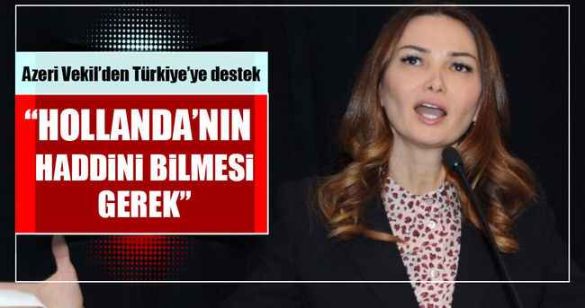 Azeri Milletvekili Ganire Paşayeva , Hollanda'nın Dışişleri Bakanı Mevlüt Çavuşoğlu ile Aile ve Sosyal Politikalar Bakanı Fatma Betül Sayan Kaya'ya yönelik tavrına tepki göstererek, "Hollanda'nın haddini bilmesi gerektiğini" söyledi.