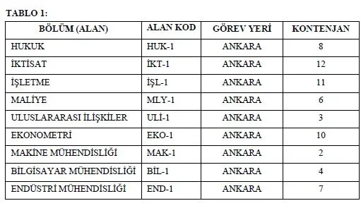 a) TABLO 1'de görev yeri Ankara olan alanlar, TABLO 2'de ise görev yeri İstanbul olan alanlar gösterilmiştir. Adaylar, TABLO 1 veya TABLO 2'de yer verilen alanlardan sadece bir tanesini, alan kodunu belirtmek suretiyle tercih edebilecektir.