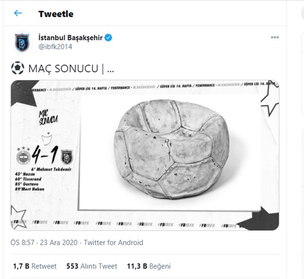 Karşılaşmadan sonra Başakşehir'den imalı paylaşım geldi. Maç sonu paylaşımında turuncu-lacivertliler patlak top kullandı.