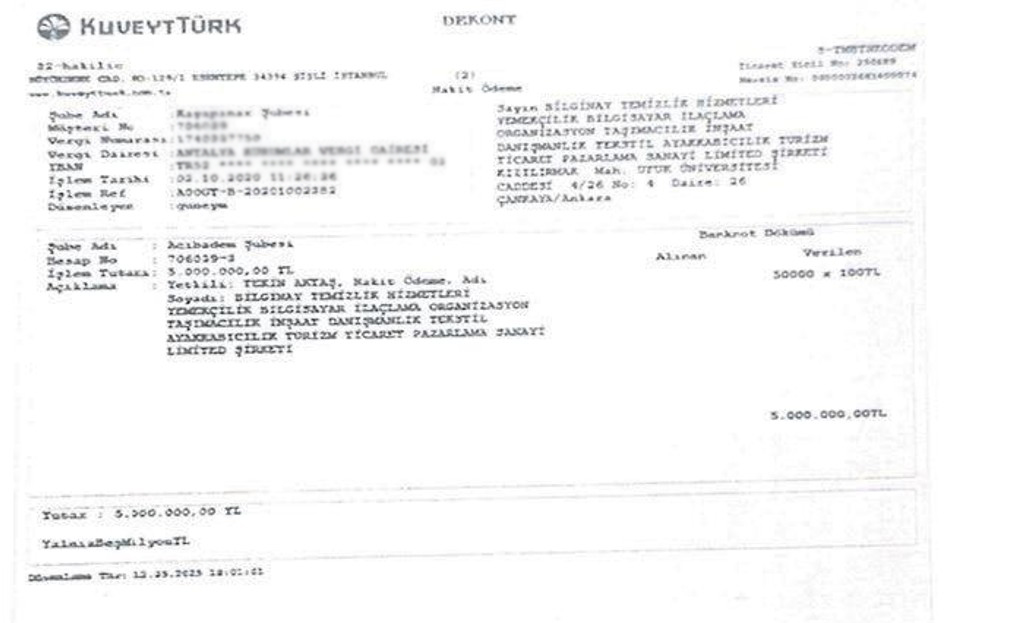 Aziz İhsan Aktaş'ın ifadesinde belirttiği gibi, toplamda 84 milyon 857 bin 500 liralık rüşvet akışı, söz konusu ihalelerdeki her ödemeyle ilintili çıktı.