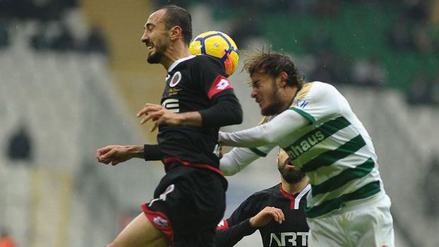 10. dakikada Ahmet İlhan Özek’in sağ taraftan yaptığı ortada Bursaspor ceza sahası içinde topla buluşan Manu’nun vuruşunda meşin yuvarlak kaleci Harun Tekin’de kaldı.