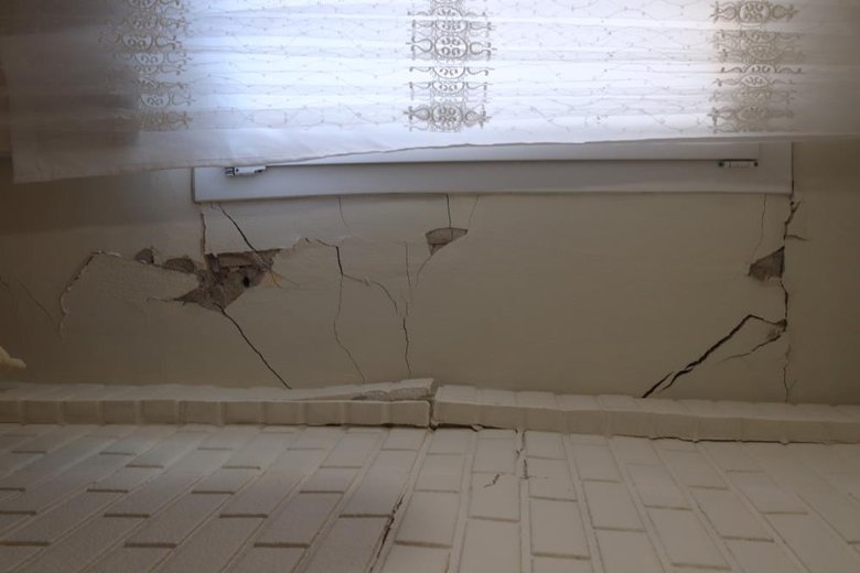 Apartmanın üst katlarının daha kötü durumda olduğunu anlatan Karaaslan, "Her dairede ve odalarda çatlaklar var. Bizim sadece yatak odasında çatlak yok. Yetkililer yapılacağını söyledi. Ancak şimdiye kadar bir işlem yapılmadı. Çok tedirgin olduk. Gece yerimden zıpladım. Deprem gibi hissettim." ifadelerini kullandı.