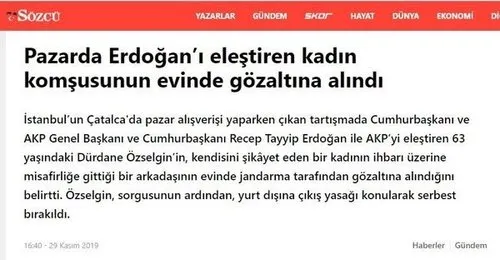 İstanbul Valiliği açıklamasında şu satırlara yerverildi: Çatalca İlçemizde 28.11.2019 tarihinde gözaltına alınan (D.Ö) adlı şahsın, bazı basın yayın organlarında yer alan "Cumhurbaşkanı Sayın Recep Tayyip Erdoğan'ı eleştirdiği için gözaltına alındı" haber ve iddiaları gerçeği yansıtmamaktadır.