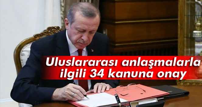 Cumhurbaşkanı Recep Tayyip Erdoğan, uluslararası anlaşmalarla ilgili 34 kanunu onayladı.