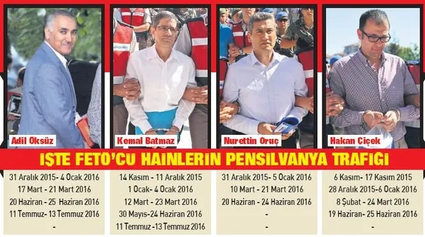 15 Temmuz darbe girişiminde darbenin kontrol merkezi Akıncı Üssü'ndeki eylemlere ilişkin davanın 9 bin 204 sayfalık gerekçeli kararında, bugüne kadar hiç gün yüzüne çıkmayan çarpıcı bilgiler yer aldı. SABAH'ın ulaştığı dava dosyası eklerinde, darbeyi yönetin mahrem imamların 1 Kasım 2015 seçimleri sonrasında yoğun Pensilvanya trafiği dikkat çekti. Adil Öksüz, Kemal Batmaz, Hakan Çiçek gibi darbeyi yöneten mahrem imamlar ABD'ye İngiltere, İsviçre ve Almanya gibi ülkeler üzerinden geçti. Darbeyle Gülen'in bağını gizlemek amacıyla yapılan bu trafiği ABD'nin İç Güvenlik Bakanlığı Gümrük ve Sınır Koruma Ofisi raporları deşifre etti. Raporlara göre, mahrem imamlar farklı ülkeler üzerinden ABD'ye geldi. Hatta durumu kuşkulu görülerek kendisi ile mülakat yapılan Kemal Batmaz, ilk gece New York Riviera Otel'de kalacağını, geri kalan tüm zamanında ise Pensilvanya'da Fetullah Gülen ile kalacağını yetkililere anlattı. Elde edilen belgeler, Ankara'da yapılan toplantılar sonrasında sürekli ABD'ye giden mahrem imamların darbe girişiminin elebaşı Fetullah Gülen'in talimatıyla ve yön vermesiyle yaptığı tek tek belgelenmiş oldu.