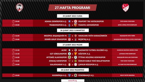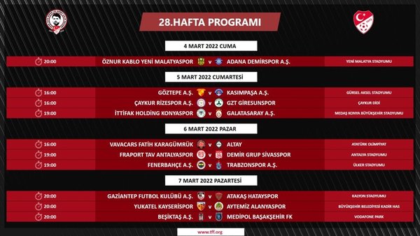 6 Mart Pazar günü Fenerbahçe, Trabzonspor'u konuk edecek. 14 Mart Pazartesi günü ise Galatasaray, Beşiktaş'ı ağırlayacak.
