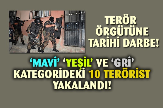 Yılbaşından bu yana yapılan operasyonlarda, İçişleri Bakanlığının aranan teröristeler listesinde 1'i "mavi", 1'i "yeşil" ve 8'i "gri" kategoride bulunan 10 terörist yakalandı.