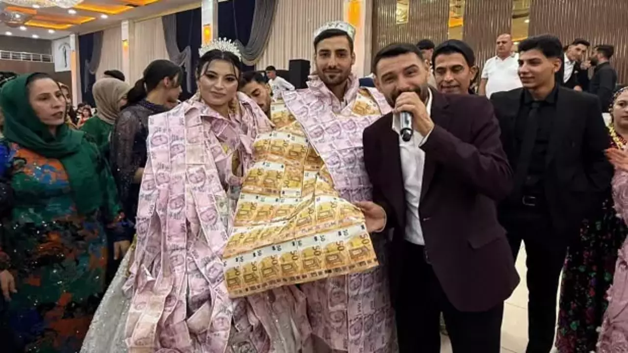 Kızıltepe ilçesinde hafta sonu yapılan aşiret düğününe Avrupa’dan gelen Nehir Vinç, damat olan kardeşi Halil İbrahim ile geline, valizle getirdiği 50 avro ve 200 Türk lirası banknotlarıyla yaptırdığı yeleği giydirdi.