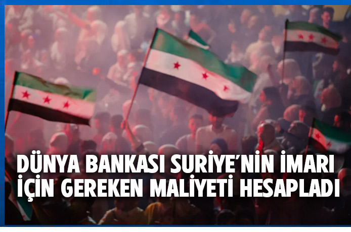 Dünya Bankası, “2011-2024 dönemini kapsayan altyapı ve bina varlıklarını” değerlendirdiğini belirttiği son raporunda, “Suriye'nin yeniden inşa maliyetinin 13 yıldan fazla süren çatışmaların ardından 216 milyar dolar olduğu tahmin ediliyor” dedi.