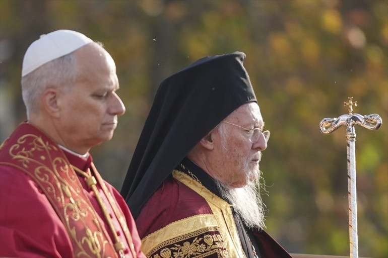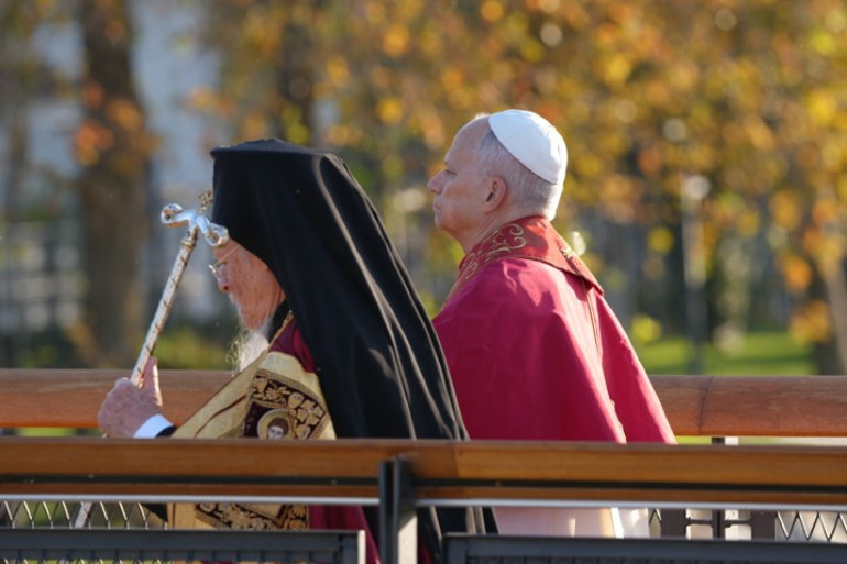 Papa 14. Leo'ya bu ayinde Fener Rum Patriği I. Bartholomeos yanında yer aldı.
