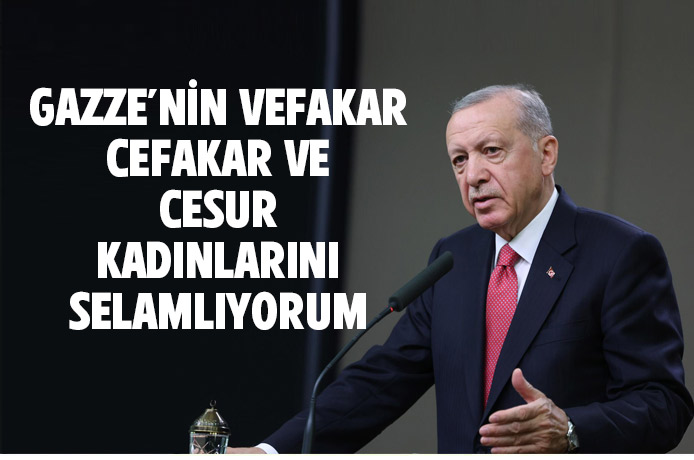 Erdoğan : Gazze'nin cefakar, vefakar, cesur kadınlarını bir kez daha selamlıyorum