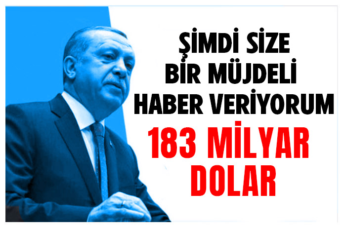 Erdoğan : Şimdi size bir müjdeli haber veriyorum, tam 183 milyar dolar