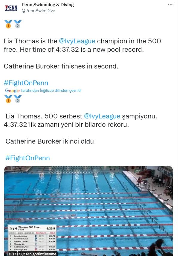 Cinsiyet değiştirme sapkınlığının bir pisliği de spor müsabakalarında ortaya çıktı. Lia Thomas isimli bir adam erkekler yüzme şampiyonasında 462. olarak dereceye bile giremezken, kadın haliyle kadın yarışmacıların hakkına girerek fizyolojik üstünlük göstererek yarışmada büyük farkla 1. Oldu.