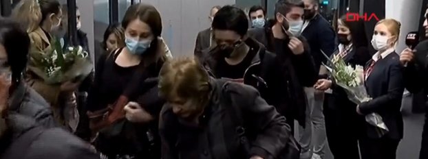 Yolcular, çiçeklerle karşılandı.