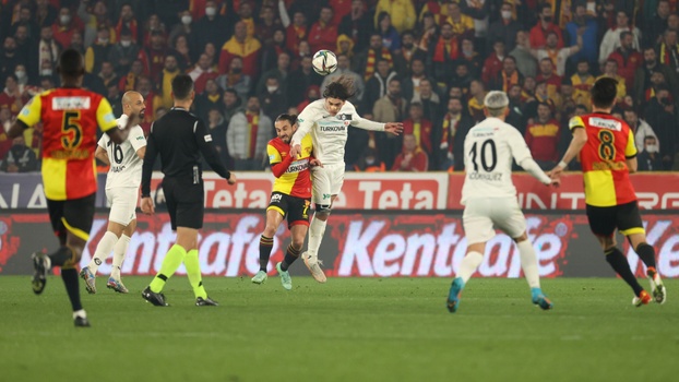 38. dakikada kaleci İrfan Can Eğribayat'la karşı karşıya kalan Kazımcan Karataş, Göztepe ceza sahasında yerde kaldı. Hakem Sarper Barış Saka, VAR uyarısıyla izlediği pozisyonun ardından penaltı kararı verdi. 42. dakikada penaltı atışını kullanan Deniz Kadah takımını 1-0 öne geçirdi.
