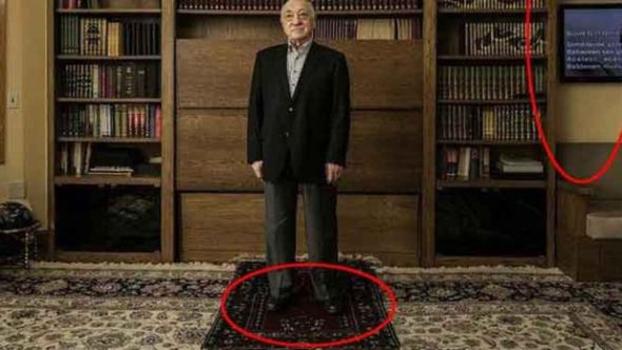 İstihbarat birimlerine göre, FETÖ elebaşısı Gülen, İslami değerleri hiçe sayıp seccadeye ayakkabılarıyla basarak ABD ve Batı’ya “Radikal değiliz, kutsiyetlerimiz yok, şekilsel hususları dert etmiyoruz. Yükselen radikalizme karşı bizi kullanın” mesajını iletti. Fotoğrafta arkada kütüphane olmasının da “İlimliyiz, önceliğimiz ilim” mesajı vermeyi amaçladığı belirtildi.