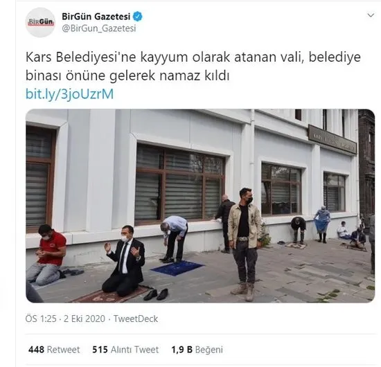 BirGün: "Kars Belediyesi'ne kayyum olarak atanan vali, belediye binası önüne gelerek namaz kıldı"