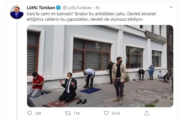 koronavirüs tehlikesinden dolayı cami dışında Cuma namazı kılan kars valisi; CHP ve İYİ Parti7yi kızdırdı