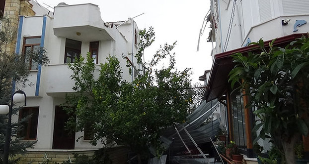 Başyurt Sitesi Başkanı Asım Büyük, “Bir fırtına ile denizden gelen bir hortum komşumuzun çatısını uçurdu. 150 metrelik çatıyı kaldırıyor. İlk binaya bir şey yapmıyor. Ondan sonraki 5 hanenin çatısını, güneş enerjilerini ve pergulelerini patlattı. Bir yarısı bu alana, bir yarısı da parka düştü. En büyük tesellimiz can kaybı olmaması. Buna da şükrediyoruz. Gelen mala gelsin diyoruz, ama bunun yanında devletten yardım bekliyoruz. Arkadaşlarımızın durumu malum. Hepsi emekli” dedi.