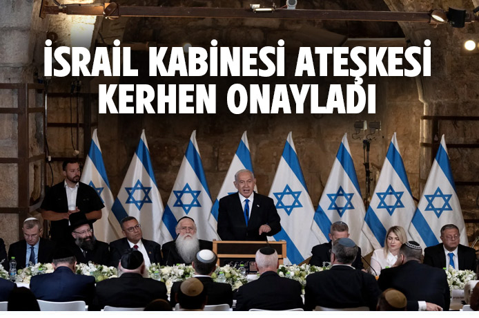 İsrail kabinesi, Hamas'la varılan Gazze'de ateşkes anlaşmasını onayladı. Plan kapsamında İsrail ordusu belirlenen hatlara çekilecek, Hamas ise elindeki tüm rehineleri 72 saat içinde serbest bırakacak. Taraflar, Kızılhaç aracılığıyla rehinelerin ve mahkumların değişimini koordine edecek. Anlaşmanın uygulanmasını ABD, Katar, Mısır ve Türkiye’nin de yer aldığı bir görev gücü denetleyecek.