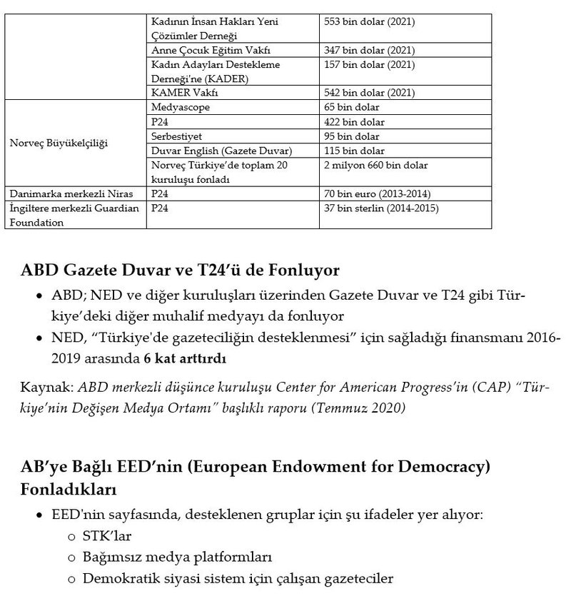 AK Parti Hükümeti'ni eleştiren ve muhalefete destek veren haberleriyle bilinen 'Bianet' adlı internet sitesinin ise İsveç devletinden 2007-2021 yılları arasında toplam 7 milyon 672 bin 448 ABD doları fonlandığı tespit edilmişti.